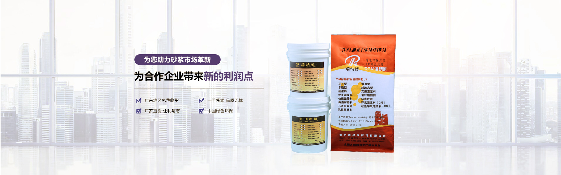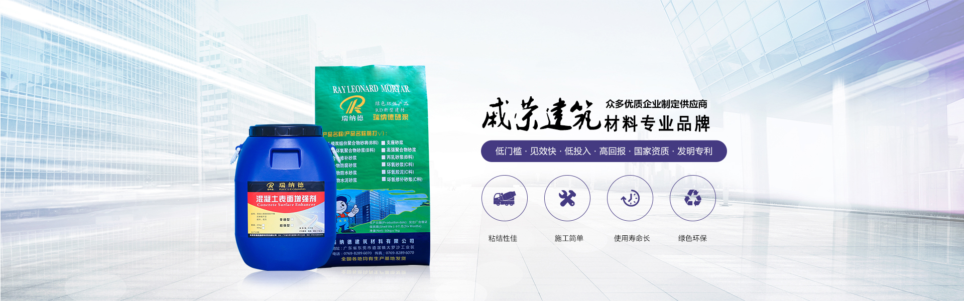 東莞市瑞納德建筑材料有限公司是東莞市戚榮建筑材料有限公司是旗下子公司,是一家集研發(fā)、生產(chǎn)、銷售、技術(shù)服務(wù)為一體的技術(shù)型企業(yè),。現(xiàn)已在廣東、浙江、北京、河南鄭州、沈陽(yáng)、重慶等均有生產(chǎn)基地。