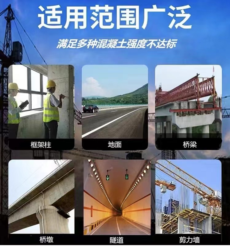 (2)該產(chǎn)品廣泛使用于:已澆筑成型后的混凝土強度不足的基礎(chǔ)建筑上。