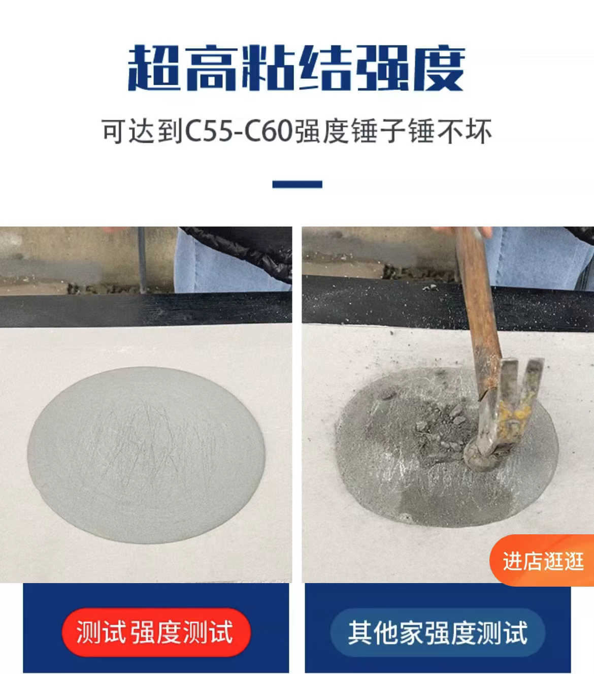 較快的早期性能體現和較高的早期強度,且后期不衰減,對很多病害部位可做到一次性根除;材料本身有很強的防水、耐腐蝕和抗紫外線能力,其抗老化能力是原水泥混凝土的5倍以上,性能衰減不會早于原混凝土,不會因老化而失去粘接能力和抗壓強度。