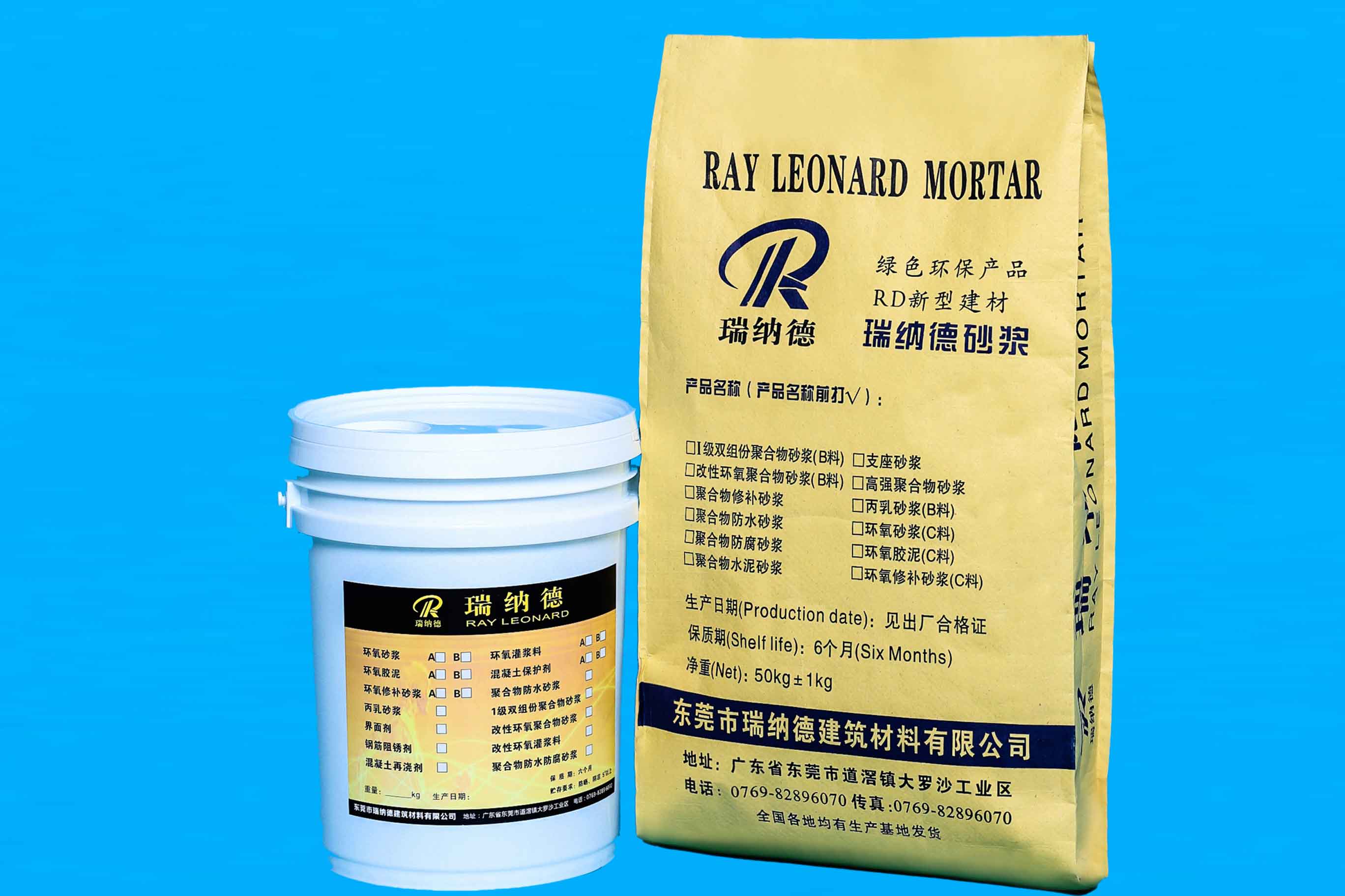 1.聚合物防水砂漿,是以水泥為基礎(chǔ)結(jié)合劑,高強(qiáng)度材料(石英砂)作為主骨料,輔以高分子膠粉、高效減水劑、早強(qiáng)劑、膨脹劑、防離析等物質(zhì)配制而成的超早強(qiáng)型混凝土結(jié)構(gòu)修補(bǔ)材料。